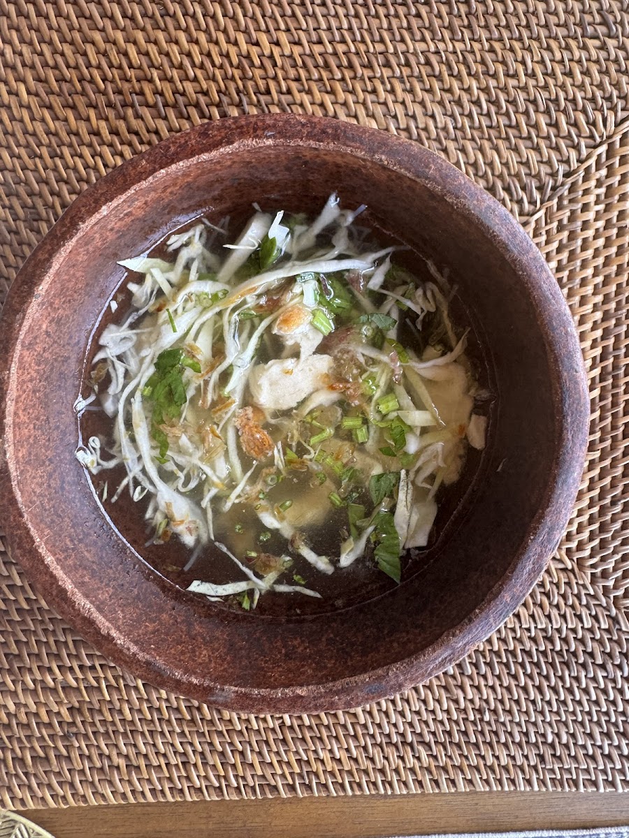 Love the beautiful service and atmosphere of this space. The food was delicious, i went with the crispy duck, and ginger lemon grass tea, I always try the local produce of the country I visit and this is not to be missed in Ubud. The peanut crispy cracker was so good.