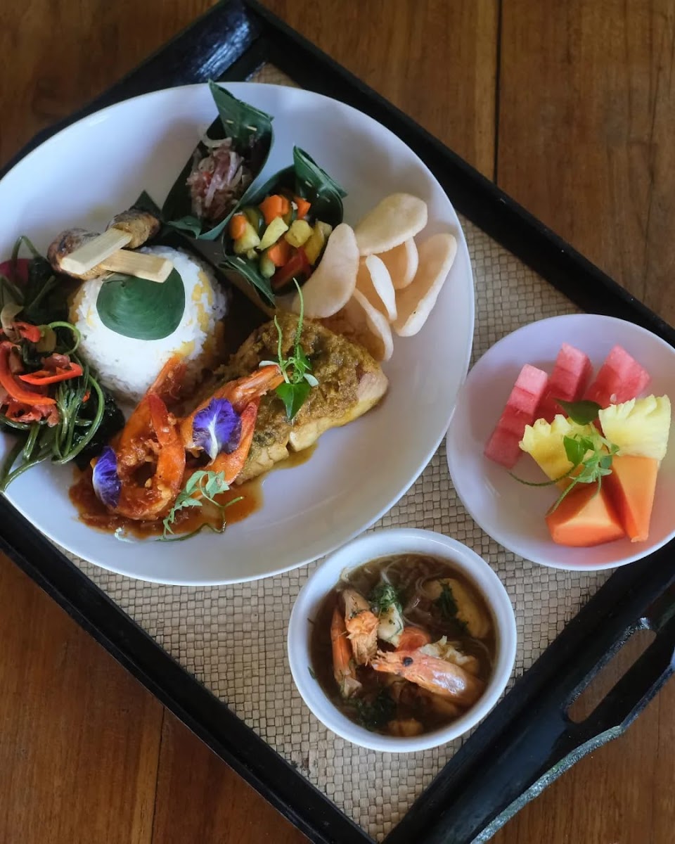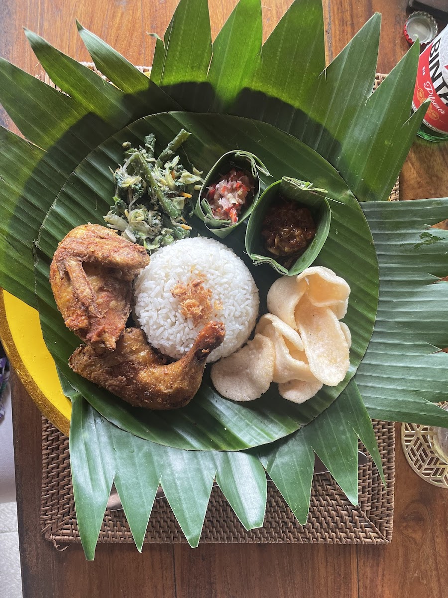 We came as part of a tour booked through Destination Services at the Sheraton. This venue exceeded expectations - we were situated in a beautiful spot by rice fields, with lovely decor and polite staff. We bought extra drinks although the lime juice water that comes included was delicious. We just wanted a little sugary extra. It was ‘set menu’ only, with “tourist friendly” local flavours. Not a western menu but definitely delicious and not spicy if you didn’t want sambal. There was a peanut rice cracker starter, soup and a beautifully presented main course. We finished with included fruit platter. Everything was promptly served by charming serving staff.